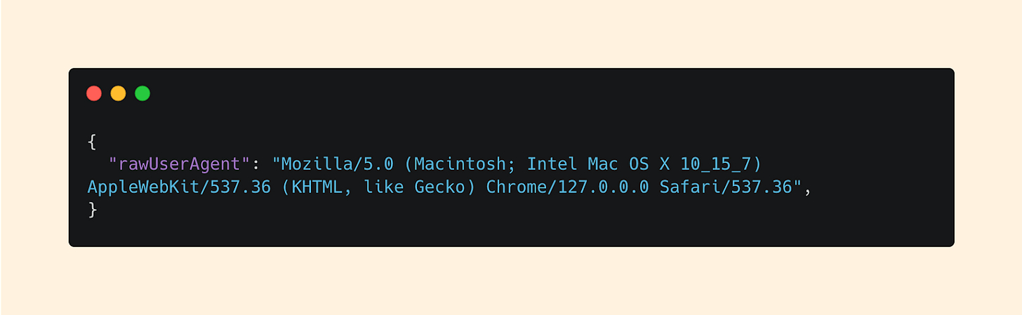While some of this info is further parsed for us, the rawUserAgent gives the full fingerprint of the device. This can be incredibly useful especially if you have an inventory of the expected devices that users have.